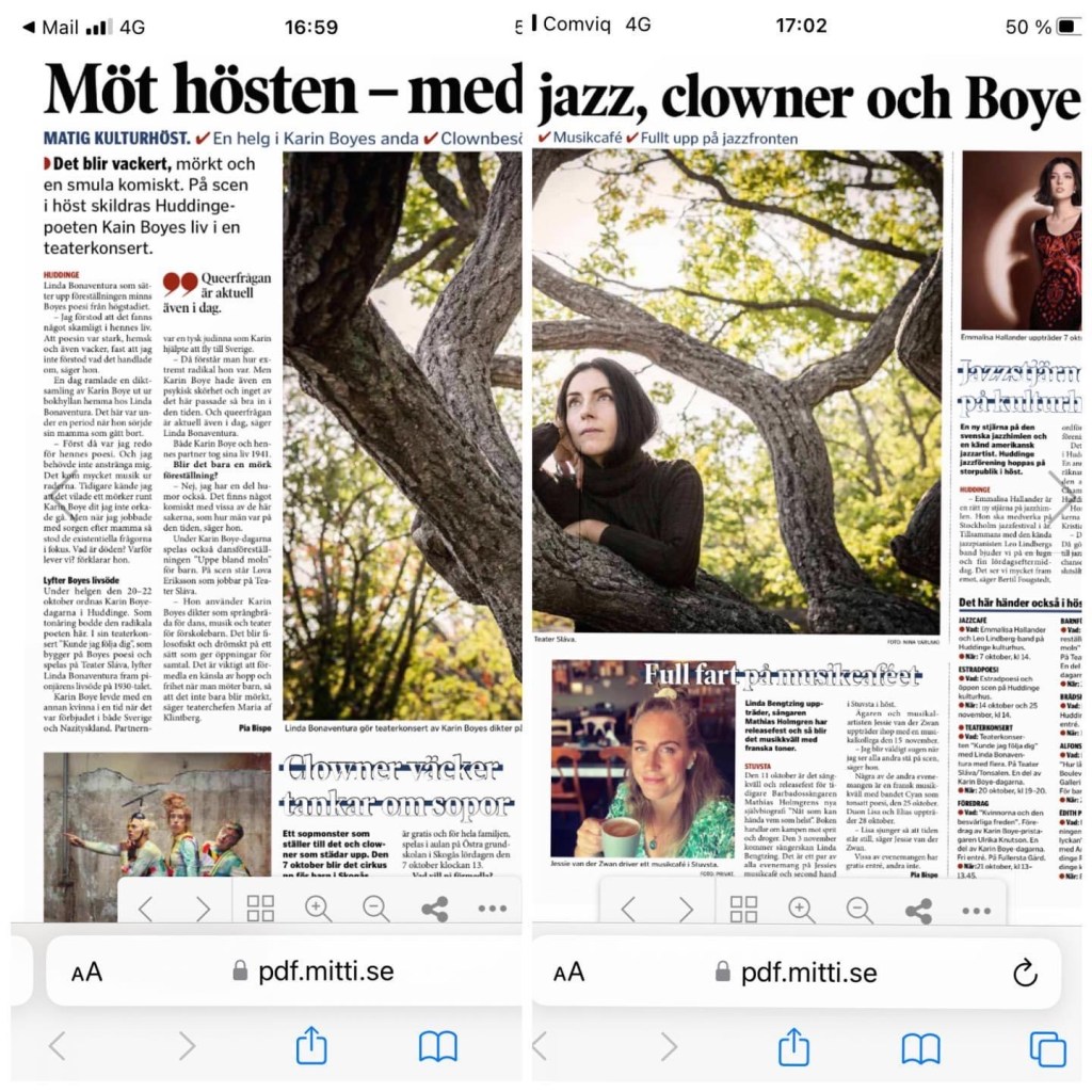 Intervju om föreställningen Kunde jag följa dig i tidningen Mitt I.